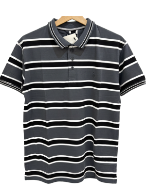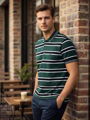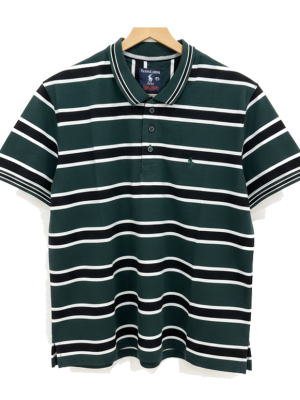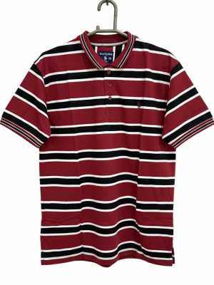 Kay Dot Red, White & Black Striped Cotton Polo Shirt
