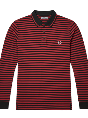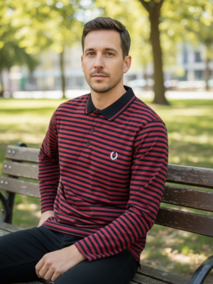 Red & Black Full-Sleeve Cotton Striped Polo Shirt