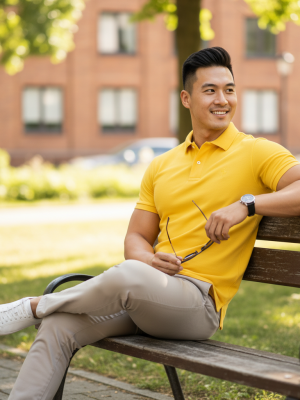 Kay Dot Plain Yellow Cotton Polo Shirt