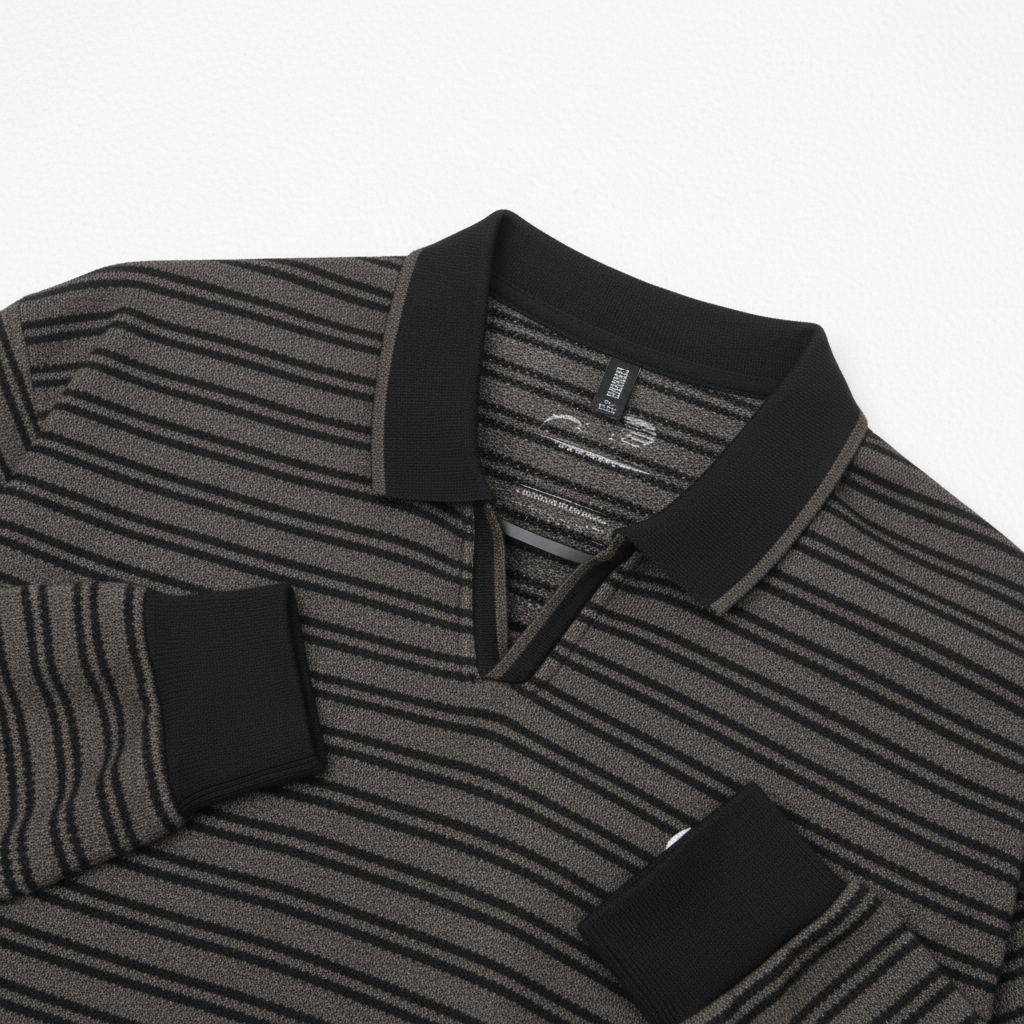 Premium knitted shirt with double-line horizontal stripes, reflecting timeless charm and subtle contrast.