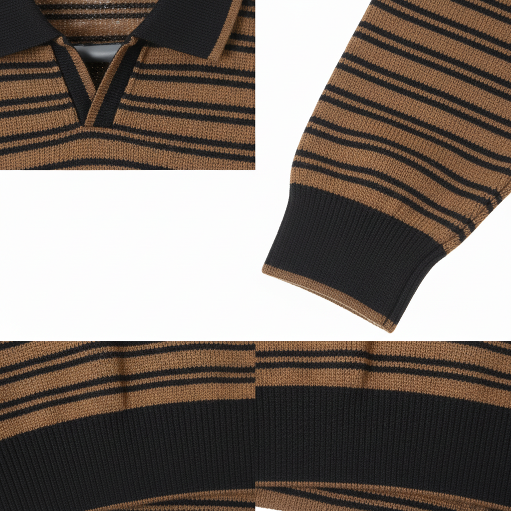 Charcoal grey and camel complete this horizontal stripe collection with versatile neutrals that serve as wardrobe foundations. The charcoal grey offers a sophisticated alternative to black, providing depth without the severity, while the camel brings warmth and approachability to any ensemble. The double-line horizontal stripe pattern creates a distinctive signature across all colorways, ensuring brand recognition while allowing individual expression through color choice. These shirts are designed for the discerning customer who appreciates subtle details and understands that true luxury lies in quality construction, premium materials, and timeless design rather than conspicuous branding or trendy embellishments.