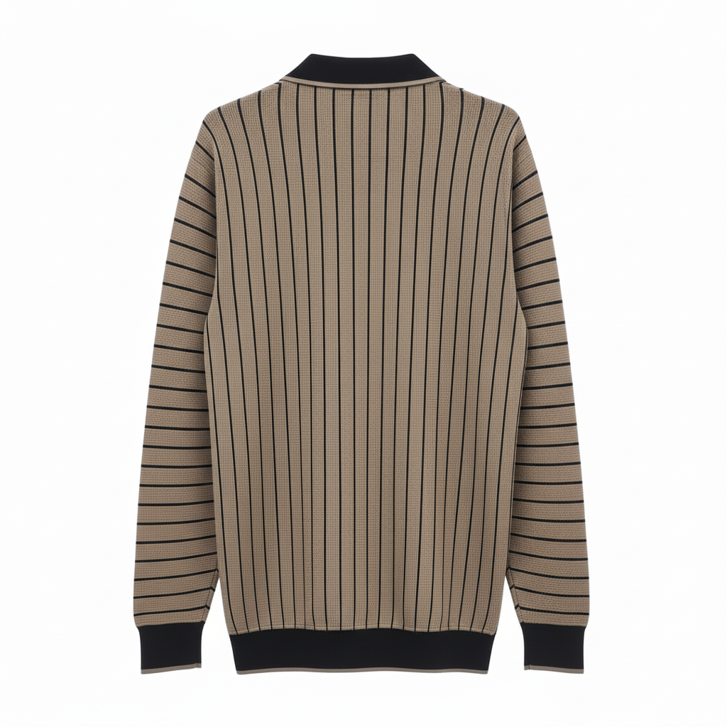 The expanded color palette in this collection offers options for every preference and occasion. The camel and brown tones bring warmth and earthiness, perfect for autumn and winter styling, while the white base provides a crisp, clean option for brighter seasons or layering under darker outerwear. Each colorway maintains the signature vertical stripe detailing that defines this collection, with contrasting black lining that adds depth and visual interest. The premium knit fabric used throughout ensures these shirts maintain their shape and appearance through repeated wear and washing, representing an investment in quality that pays dividends in longevity and consistent style.