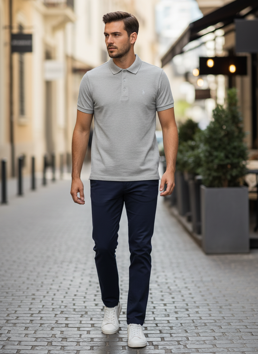 Soft grey cotton polo for a modern, understated style that fits every occasion.