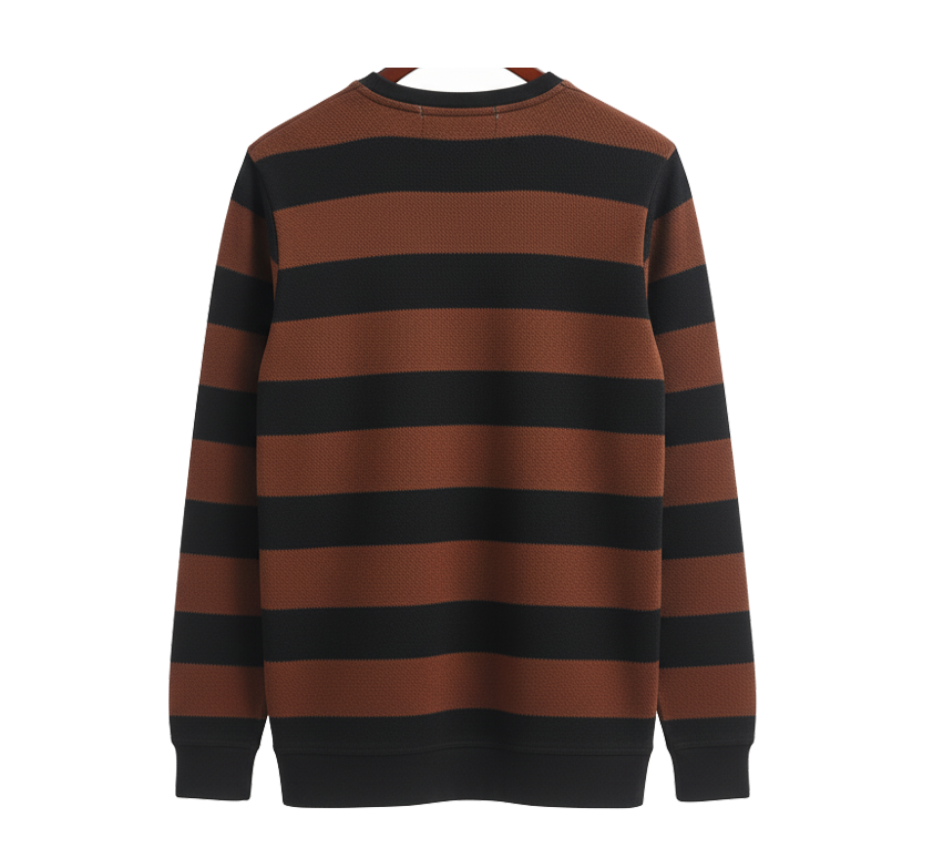 Knitted Round Neck Full Sleeves Striped Shirt – Brown and Black Stripes