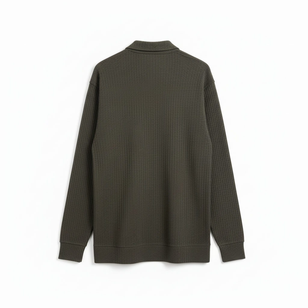 Knitted Zipped Polo Full Sleeves Shirt – Olive (Textured)
