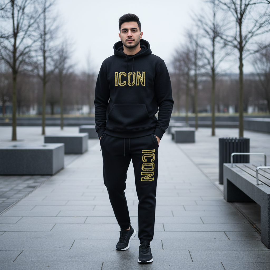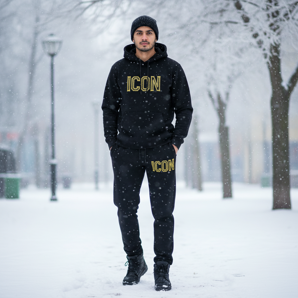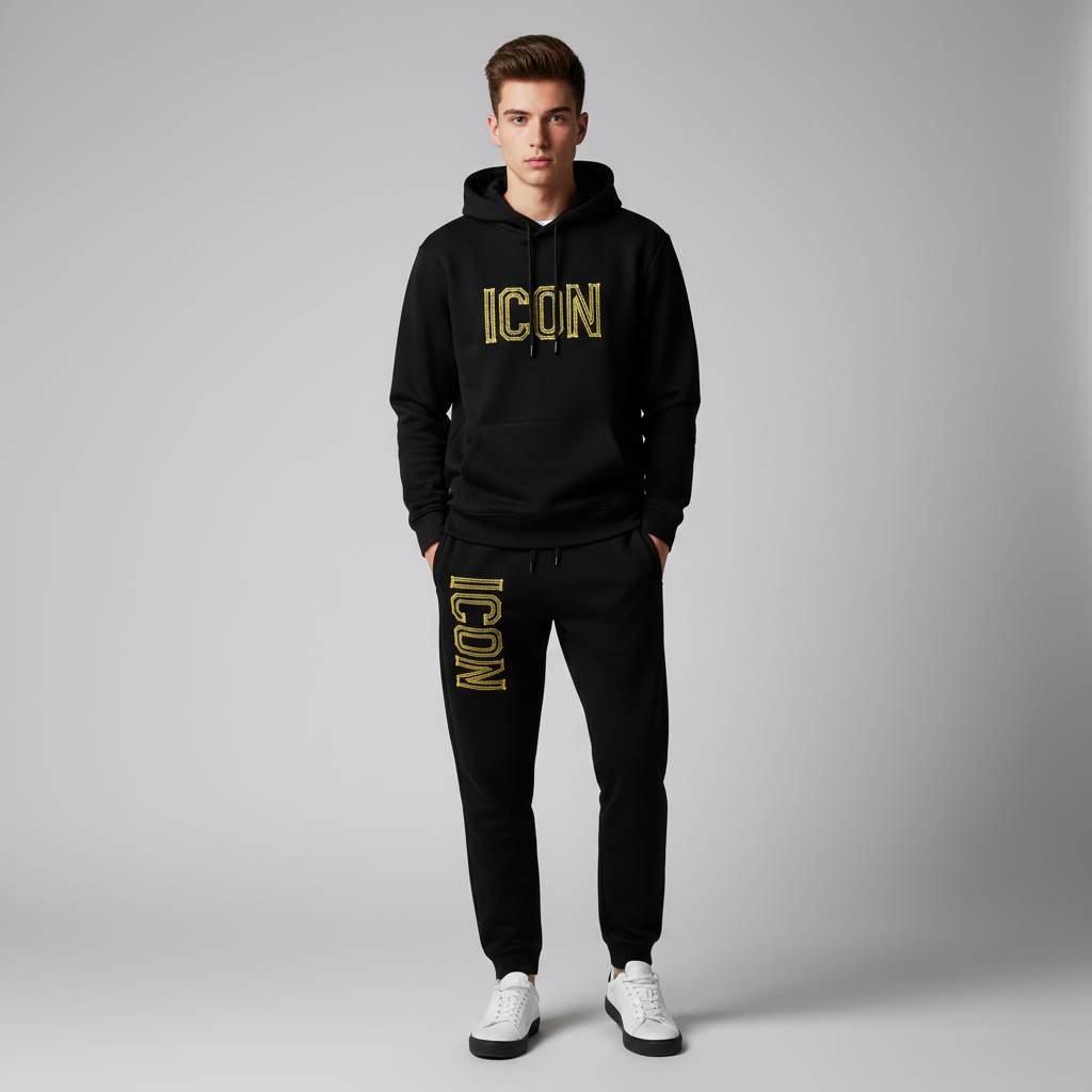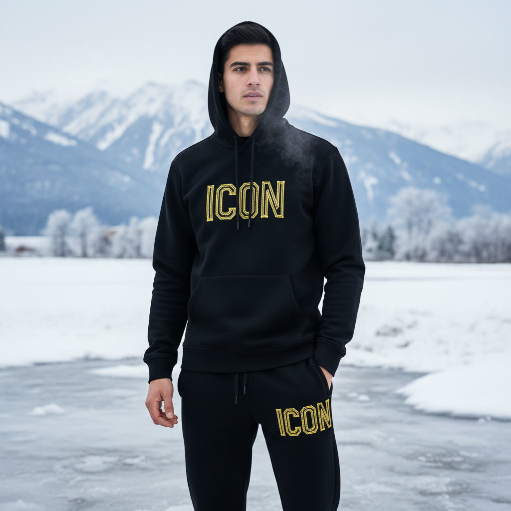 Black tracksuits with yellow ICON detailing complete this collection with bold, contemporary styling that appeals to those seeking statement pieces within refined parameters. The black base provides versatility and sophistication, serving as a neutral canvas that coordinates with virtually any color palette, while the yellow ICON adds unexpected brightness and energy. These complete tracksuit sets represent exceptional value, offering coordinated hooded and trouser combinations at a single price point. The premium fleece construction ensures these pieces will maintain their appearance and performance through repeated wear and washing, representing an investment in quality that delivers consistent comfort and style throughout multiple winter seasons.